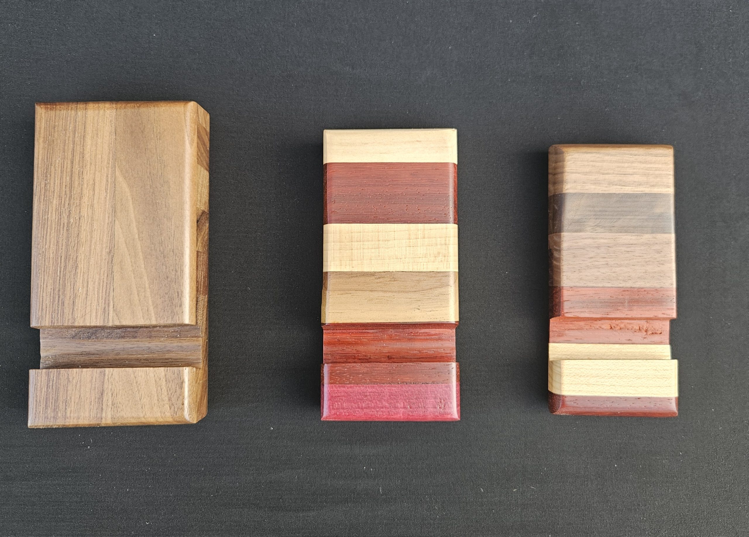 3 sizes of phone/business card holders small, Medium and large. we can do sinlg wood or multi wood in any size.